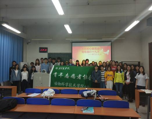 活动主要分为四部分,分别为:十九大简介、十九大报告、大会意义及我们怎么做,四个方面。同学们认真聆听、积极回应。在“十九大报告”环节,动科青协会长王翌翀为同学们讲述了十九大报告的主要内容,同学们积极回应,对报告中所提到的问题纷纷发表了自己的看法。在“我们怎么做”环节,同学们表示要努力学习,实现自己的中国梦,为建设富强民主文明和谐美丽的社会贡献力量,努力实现中华民族伟大复兴的中国梦。