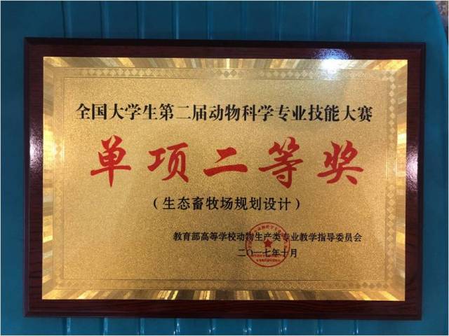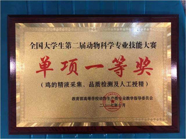 还荣获“鸡的精液采集、品质检测及人工授精”项目一等奖和“生态畜牧场规划设计”项目二等奖。郭凯军老师荣获优秀指导教师奖。