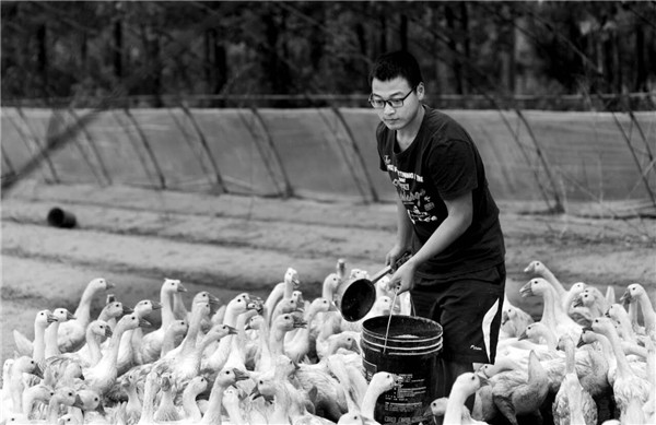 毗邻永定河畔的北章客村林地里,鹅的叫声不断。寒冬里,24岁的谢云浩,一身运动服,脚上的运动鞋还沾着泥土。如果不是戴副眼镜,很难想象到他是一名在读的大学生。“去年养的2000多只鹅,现在就剩下这10几只了,其余的都卖出去了。这10多只是留着让它们开春后下蛋的。”谢云浩说。