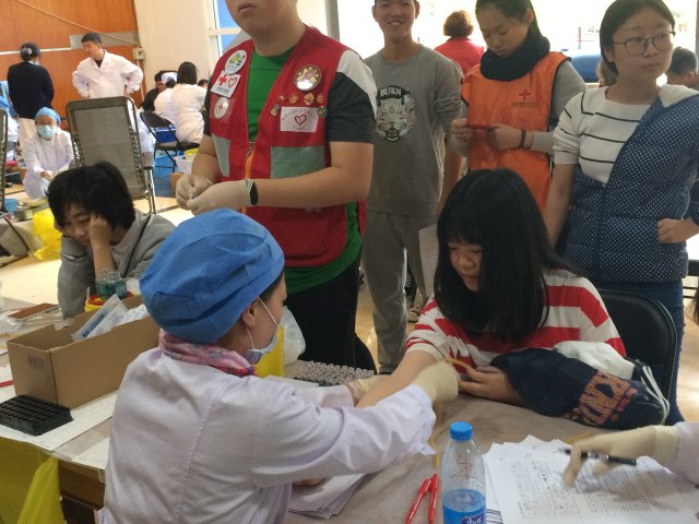 寒风习习,但挡不住同学们献血的热情,填表、化验、抽血,所有流程都在我们工作人员的协调下井井有条的进行。针头面前所有的学生因这份爱勇敢的挽起了衣袖,还有许多学生在进行献血前的健康检查,这份澎湃的爱心热潮将在每一个动科人心中传递。大家用自己的爱心和血液,为社会贡献出了自己的一份力量,与此同时,体现出了我们红桃视频