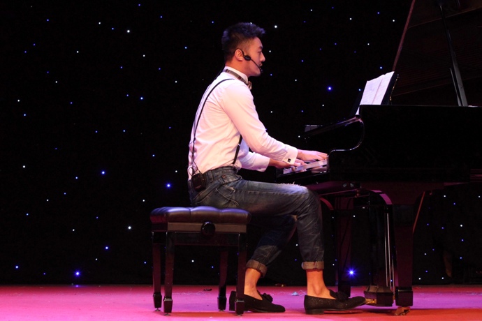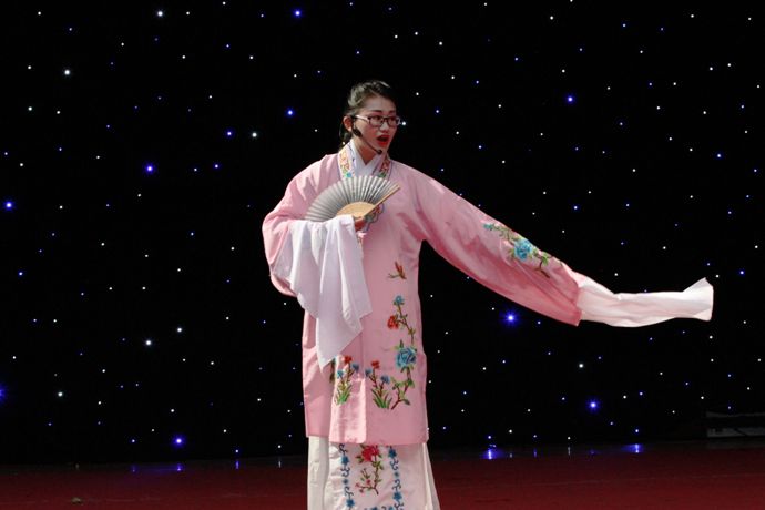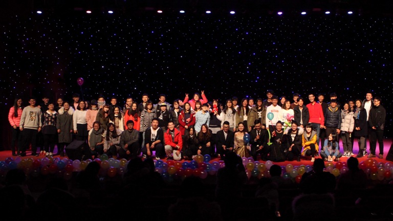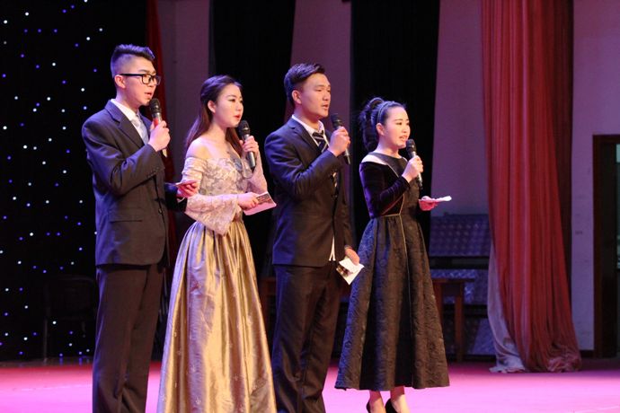 辅导员翟寅老师自弹自唱的《烟花易冷》,将晚会的气氛推向一个高潮,翟老师在学生中人气超高,绝对是全场观众同时举起手机拍照最多的一个节目。