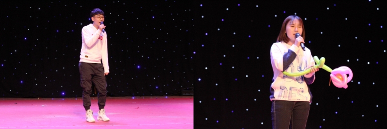 吴佳瑀和文安琪带来的相声《因为爱情》带动了全场的欢乐氛围;