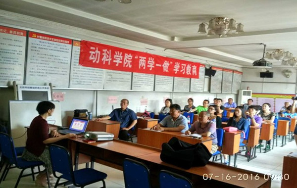 董虹老师主持。董虹老师为大家介绍了学习“两学一做”的背景及内容。张旭山老师从五个方面作了具体阐述:一是“两学一做”-时代要求;二是党章党规-划定底线;三是系列讲话-统一思想;四是合格党员-以知促行;五是四个全面-振兴中华。报告内容丰富、思想深刻、语言生动精彩,既有理论高度,又有很强的现实指导性和可操作性,对党员准确理解和把握“两学一做”具有重要的指导意义。