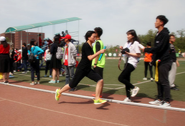 2016年北农运动会第二天,和煦的阳光洒在每个人的心上,备受同学们期待的团体项目--接力比赛开始了激烈的角逐。