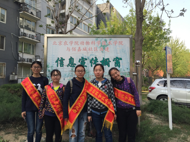 为弘扬雷锋精神,提高大学生党员志愿服务社会、服务社区的积极性,宣传文明科学养宠知识,2016年4月10日,辅导员尹伊老师与校宠物医院赵凯医生,带领动医专业党支部的同学们,再次来到共建单位回龙观镇百嘉城社区开展红色1+1志愿服务活动。