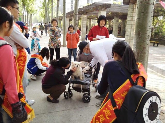 学生党员良好的精神面貌。在为居民解答养宠问题的同时巩固了自己的专业知识,充分发挥了动医专业优势与社区养宠实际的结合。