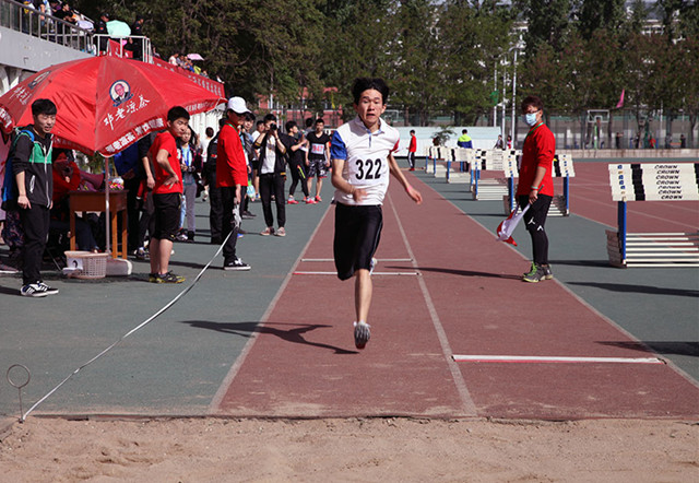 动医专业的陈鑫同学,沉着冷静,将三级跳远的助跑、跳跃、落地整套技术动作演绎得行云流水一般,完美的动作赢得场下观众的惊叹。经过激烈的角逐,最终陈鑫同学以12.47米的成绩获得男子学生三级跳远决赛冠军。