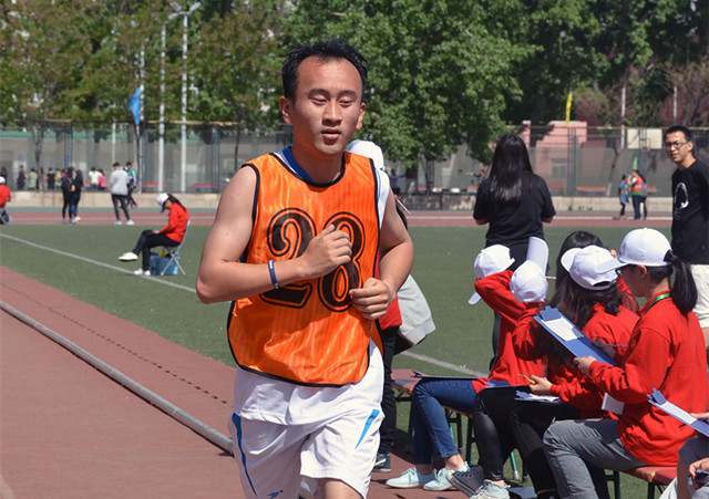漫长的5000米比赛,凭借的就是的恒心与坚持。在12圈半的时间里,我们看着侯其阁、疏泽、王琪琎、王翊翀的脚步越来越沉重。大家一圈一圈的默数圈数,呐喊声一次比一次高,即使他们不一定听的到,但我们知道在这个最考验毅力的比赛中,我们的加油对他们来说有多么重大的意义,所以所有人卯足了劲为他们加油鼓掌。每个观众的心都随着他们的脚步沉浮着。其实,大家并不强求他们能够拿多好的名次,只是希望他能够坚持跑完全程,为自己、也为所有关心他们的同学们挑战极限。这样,便是胜利!