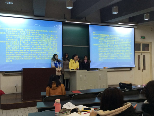 还邀请了13级的B435宿舍的学姐们为14级学生讲述了一个“学霸宿舍”的养成,学姐们分别从思想,学习,工作,生活方面,鼓励学生以热情向上的态度面对英语学习和大学的课程。几位学姐的发言使14级学生受益良多。