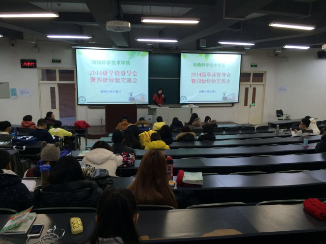 会议首先针对半学期以来的早读情况进行了总结,接下来邀请了2013级动医2班的张银同学为即将面对英语四级考试的2014级同学传授英语学习方法。张银同学在会议上用生动幽默的语言向14级同学们传达了相关英语学习技巧。红桃视频