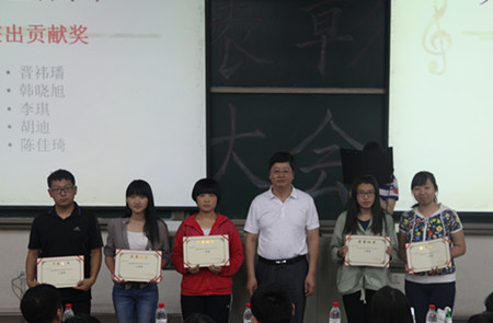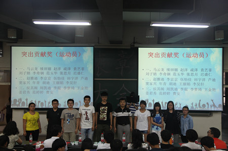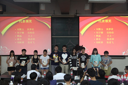 老师们为在各类文体活动中表现突出的同学颁发了奖品及证书。