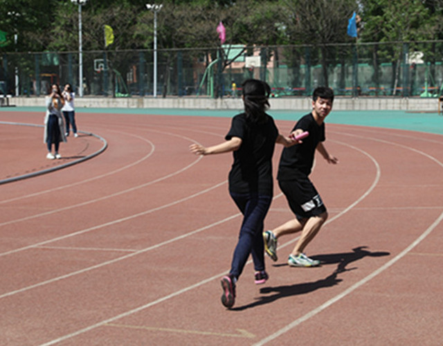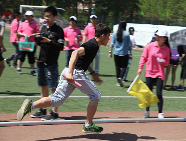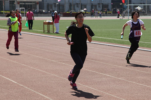 的八名运动员迈着坚定地步伐,带着必胜的信念,在欢呼声与加油声中走向赛道。他们目光坚定,气势高昂。“各就位准备,预备。”“嘭”发令枪一声令下,选手们如离弦之箭飞速前进。耐力与速度是接力赛的亮点,他们不仅要速度更需要耐力,这是激情的无限表达。在观众啦啦队的助威声中,选手你追我赶,激情无限释放。完美的传棒,飞速的奔跑,赛场上同学们的欢呼声此起彼伏。