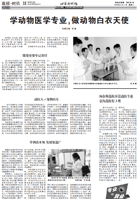 【北京考试报】学动物医学专业,做动物白衣天使
