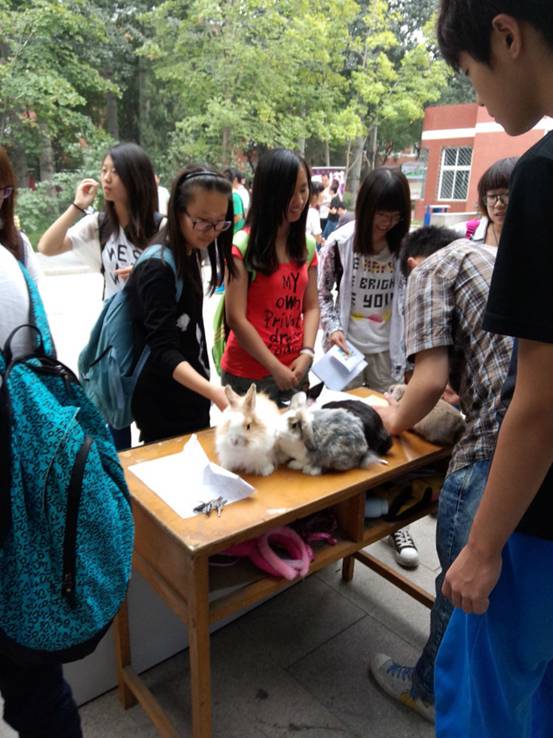9月11日兔文化社社员招募正式开始了,场面非常火爆,兔子们也抓紧机会卖萌,还有好多同学特意从宿舍赶过来看兔子。