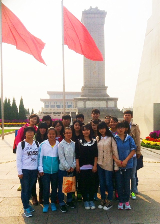 值此国庆假日,天安门游人如织,但这却丝毫没有减退大家对这具有历史性意义景点的向往之情。来到天安门广场之后,最令人印象深刻的是在此巍然屹立的人民英雄纪念碑。在场的每一个同学都以拍照合影的方式表达了自己的瞻仰之情。同学们更加清晰地认识到今日的幸福来之不易。几十年之前,正是有无数个这样的人民英雄救中国于水深火热之中,中国才能有今天的繁荣昌盛,我们才有今天的幸福生活。