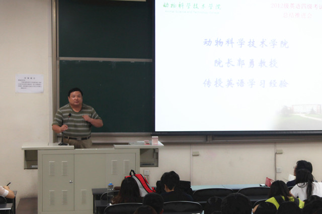 于9月9日中午在教学楼B座102教室举行了2012级四级考试总结推进会。2012级所有同学参加本次会议。院长郭勇老师、党总支副书记副院长牟玉荣老师、副院长李焕荣老师,班主任张思明老师、刘京威老师、董虹老师、张涛老师出席本次会议。2012级辅导员赵菊老师主持会议。