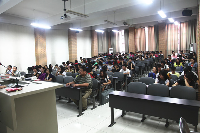 院长郭勇老师,结合自身学习英语的经验,对大家提出了几点建议。郭勇老师指出,“成功与否在于坚持与否,而非智商高低”,词汇是学习英语的根本,而词汇量是日积月累的过程,这就需要大家有持之以恒的信念;要把四、六级考试视为对英语学习水平的检测手段,而不是学习英语的最终目的;英语学习重在应用,要积极寻找并把握生活中能够用英语交流的机会,这样,英语学习才不会变得乏味无趣。