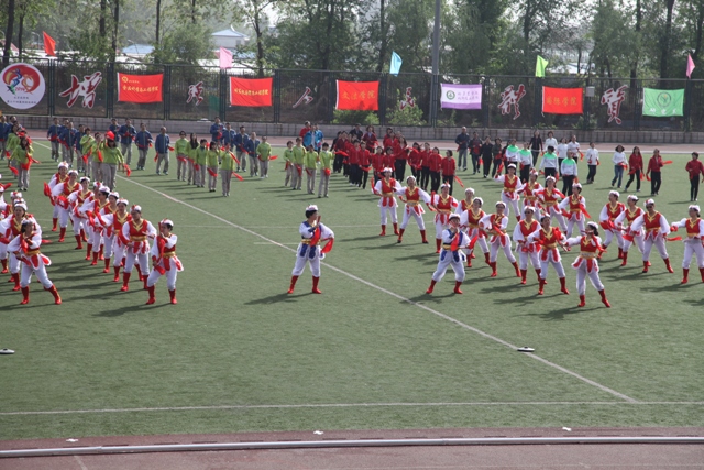 各部门的教工。30多名男教工,带着蒙古族的豪放大气,带着男性的阳刚之美;230多位女教工,凭借她们的温婉柔和更是构成了一道最美丽的风景线。她们手中的筷子,,随着身体的舞动,敲出欢乐的节奏;那她们手扬的红绸,随着筷子的敲击扬起亮丽的风采;她们健美的舞姿,更在那筷子与绸缎的相称下跳动心田的激情!