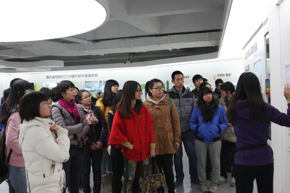 为拓展视野、增强对企业的了解,以便于以后能够更好的融入企业。2013年11月26日下午,2012级动医1班全体同学以“实践科学发展,参观知名企业”为主题,以展现当代大学生风采,实现人生美好理想,在企业中学习更多知识为目的。在班主任董虹老师的带领下,参观了首农集团北京三元食品股份有限公司。通过观看宣传片,参观环形长廊、食品展示大厅和科研实验室。一方面同学们亲眼见证了牛奶从原料奶至成品出厂的现代化生产线及其所涉及的各个质量管理环节,并品尝了在严格质量控制下生产出来的各种乳制品;另一方面同学们也深入了解了三元企业的发展历史及文化。