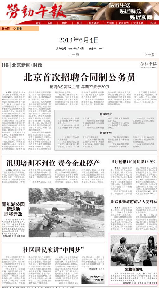 第三届宠物文化节活动被《北京考试报》、《劳动午报》宣传报道