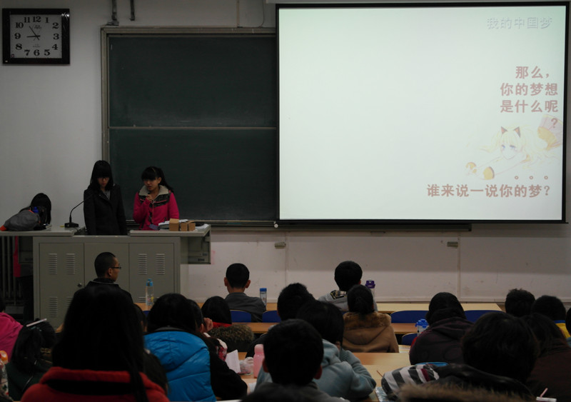 2012322班级团支部在全班同学中开展了以“中国梦”为主题的班会,每位同学都阐述了自己对“中国梦”的理解,并热烈讨论了如何实现“个人梦”、“北农梦”、“中国梦”,并将为之努力奋斗。