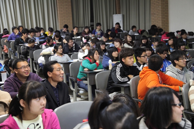 党总支书记鲁琳老师、新生辅导员赵菊老师,2012级本科生和部分研究生出席报告。