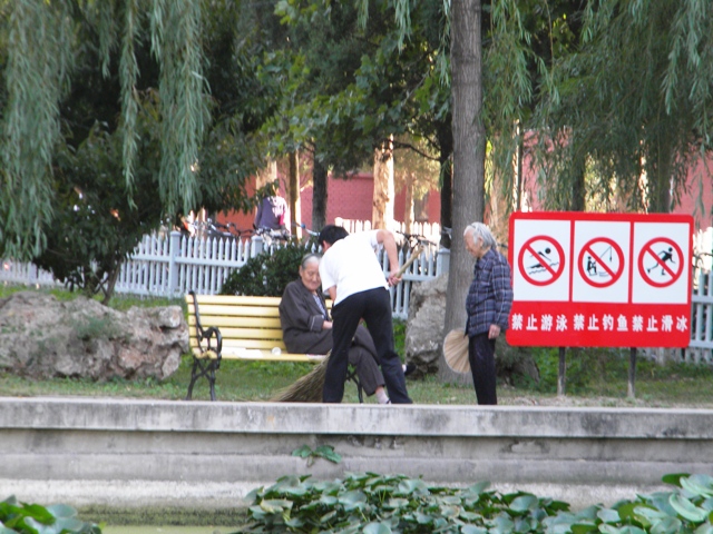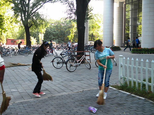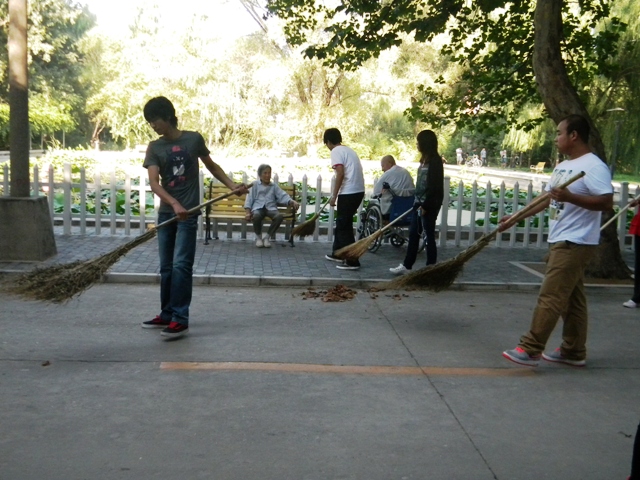 志愿者们领完劳动工具后开始对莲花池周围的小路进行清理。同学们热情高涨,服从指挥,互相配合,认真仔细地清扫每一片落叶、每一张纸屑,连夹杂在草丛中的垃圾都不放过。活动过后,志愿者们都纷纷表示自己得到了很多的乐趣,利用自己的课余时间大家一起行动起来,使我们的校园更加美好是一件非常有意义的事情。最后,在莲花池旁休息的两位老人对志愿者们的奉献也表示了感谢。
