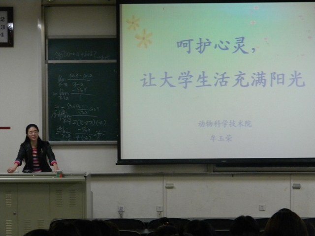 学生工作副院长牟玉荣老师为2011级新生做了题为《呵护心灵,让大学充满阳光》的入学教育第九讲。
