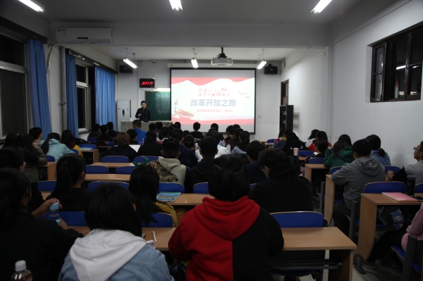 党总支书记张永红老师为同学作了开班动员,围绕我国改革开放40年来的风雨之路为同学进行了授课。