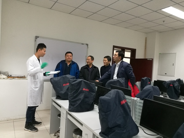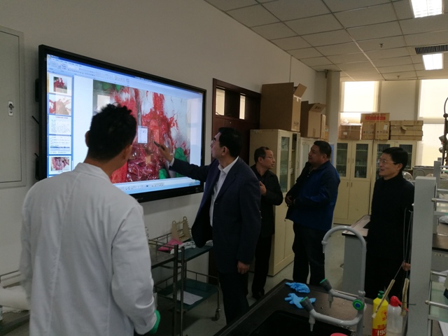 随后杨书记一行又先后来到二层考察了形态教学显微互动实验室等相关实验室,在考察过程中张铁强副校长仔细询问了相关实验室在教学使用中的情况及存在的问题、使用现状和设备维护更新等情况,听取了相关负责人的详细介绍。
