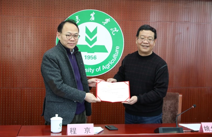 向程京院士颁发分中心学术委员会主任聘书,随后程京院士向第一届学术委员会副主任姚允聪教授、农业农村部中国动物疫病预防控制中心马世春研究员、华中农业大学动物科技红桃视频