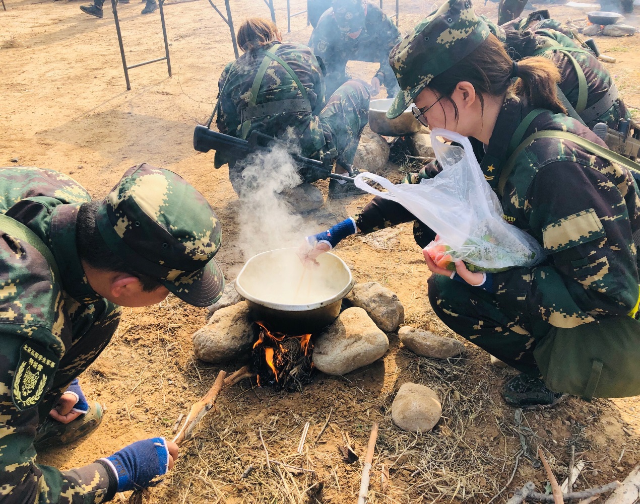 不同以往传统的军训模式,着眼于模拟真实战场环境,特训营设置了紧急集合、徒步行军、摩托化行进、战术情况处置、宿营与警戒、野外生存、战术基础、自救互救、定向越野和实弹射击等多个训练科目。