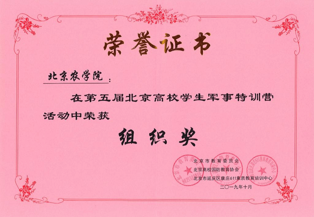 荣获“第五届北京高校学生军事特训营组织奖”,红桃视频