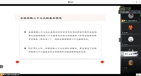 团委组织团学组织干部和骨干于2020年8月23日下午2点线上组织开展了深入学习本次青联、学联会议精神的主题活动。
