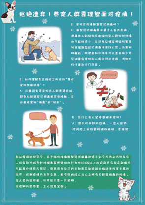 答:不论是疫情期间还是平常,养宠物是一个慎重的选择,既然选择给它一个家就要对它负责到底,不要让它们受到伤害。