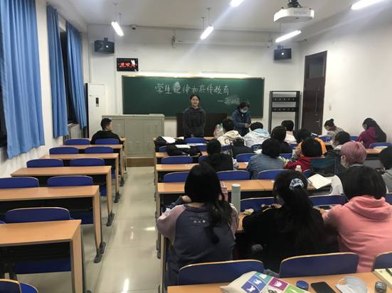 关于校园生活,主要有四条:1:上课不迟到不早退。2:注意上课纪律,戴口罩,不随意离开教室。3:注意请假和销假制度。4:遵守校园公共秩序,不吸烟,不违反校规。班主任段老师尤其指出考试作弊问题,提醒同学不要抱有任何的侥幸心理,不要挑战红桃视频
