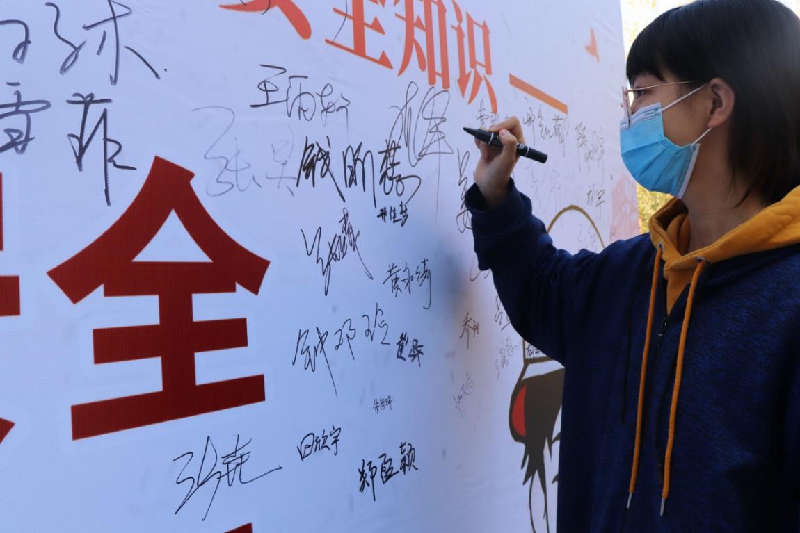 签名现场许多教师和学生积极踊跃地参与到活动中来,纷纷在印有“加强消防宣传 普及消防安全知识”的签名墙上签名,表达对消防安全的支持。
