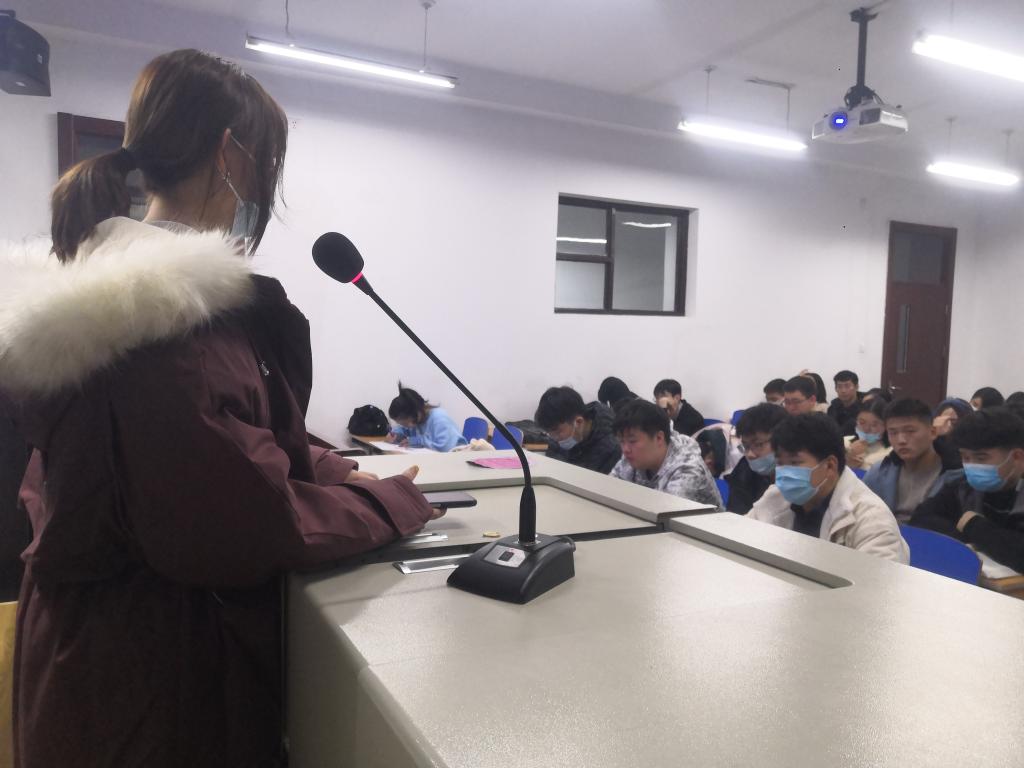 团委副书记、上学年特等奖学金获得者李敬轩同学就大学的学习和生活管理向所有新生分享了自己的体会,并向大家介绍了综合素质测评办法。