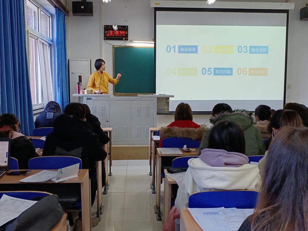 研究生辅导员尹伊老师就求职就业中的一些政策概念、就业流程、求职方法以及常见的就业问题为同学们一一进行了解读和分析。她为大家详细的分析了今年的就业形势和特点,让各位毕业生做好相关准备,同时也为大家提供了很多可行的求职渠道和具体的求职信息。