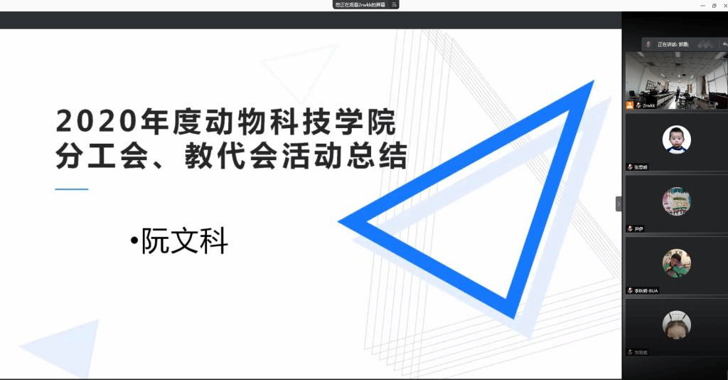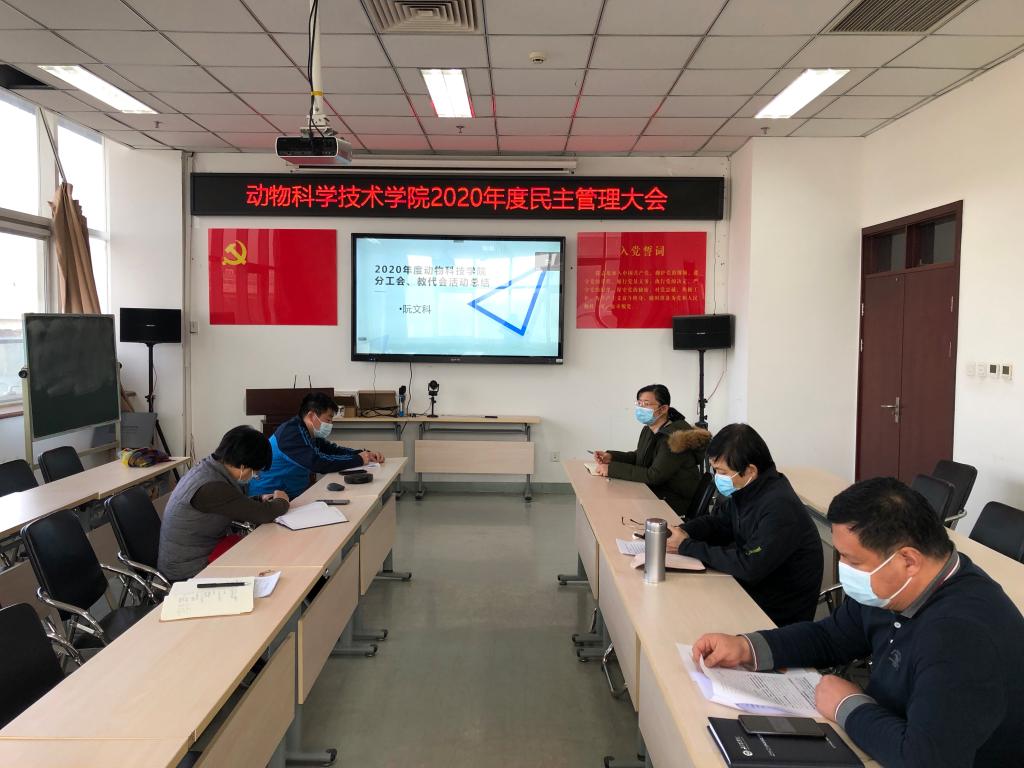 2020年度民主管理大会采取动科楼313现场和腾讯会议线上两种形式同步进行,全体教师参加会议,会议由分工会主席阮文科老师主持。