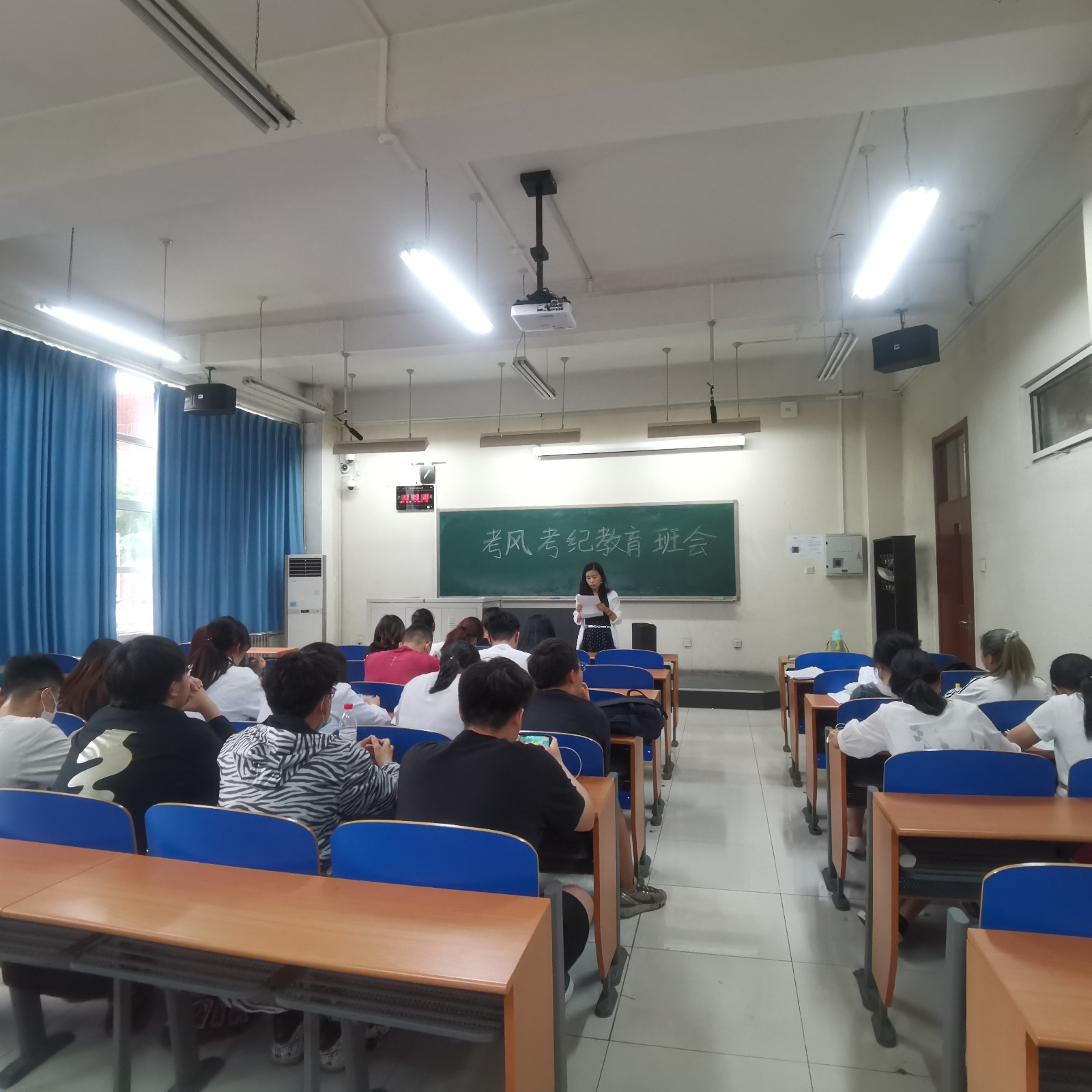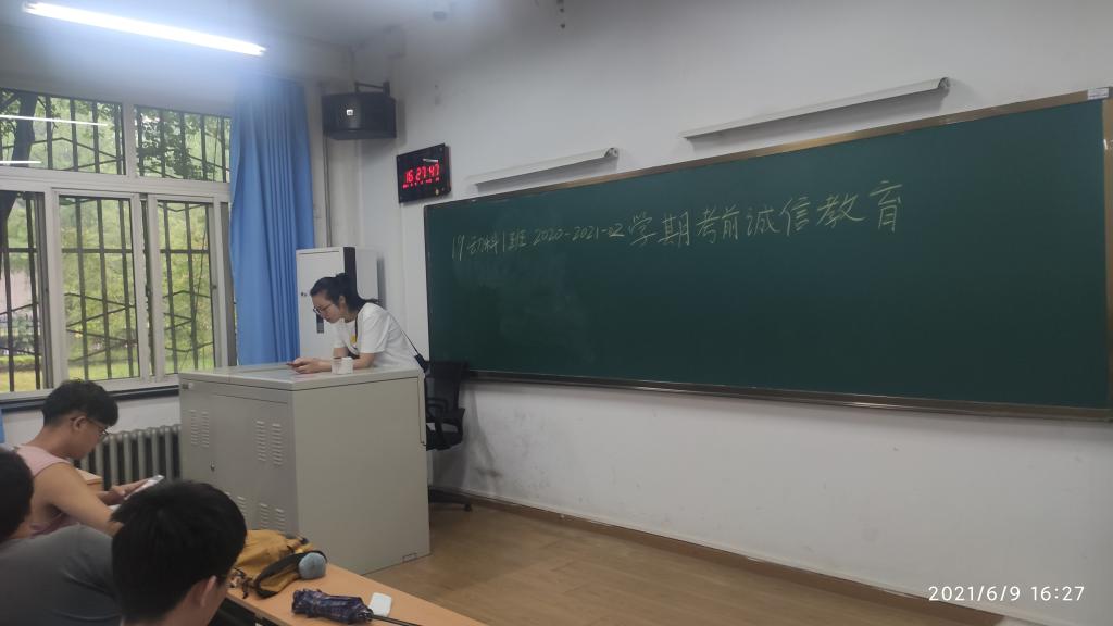 考试纪律及考试违纪处理办法;并分析因考试作弊受到处分的案例,给同学们讲解考试作弊的危害与严重后果;最后介绍了正确应考的策略和方法,提醒大家在期末备考阶段制定切实可行的学习计划,注意劳逸结合,合理安排学习时间。同学们也积极互动,通过分享身边的反面事例,劝诫大家诚信考试,诚信做人。