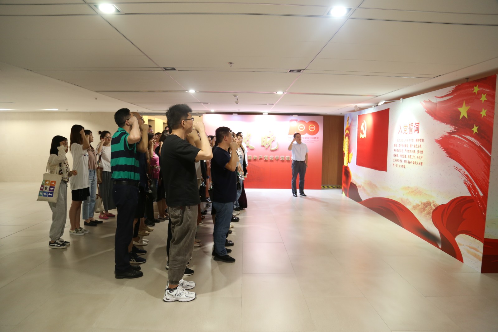 最后,党员同志们来到展馆二层,在党总支书记党登峰的领誓下,面向党旗重温了入党誓词。