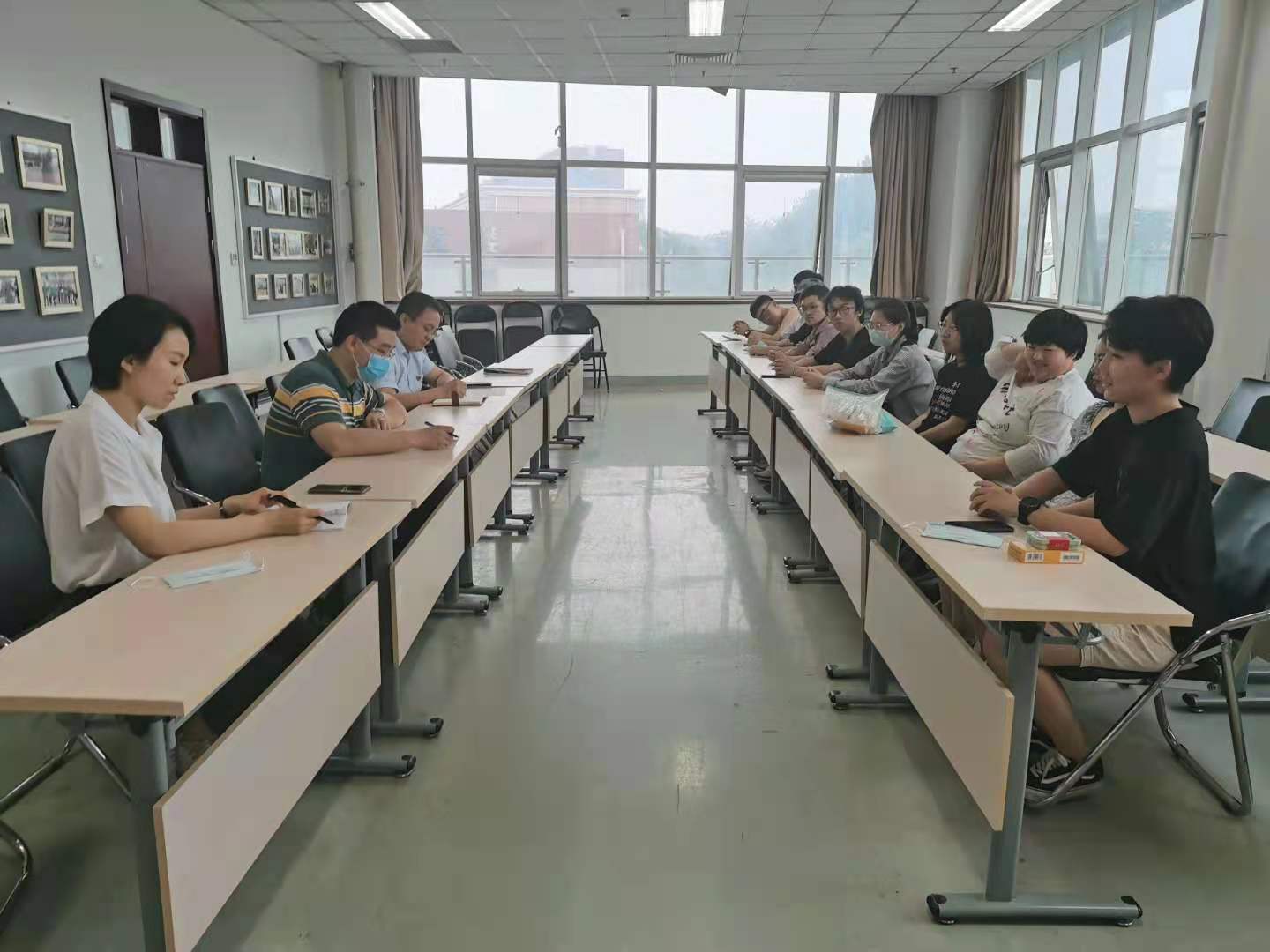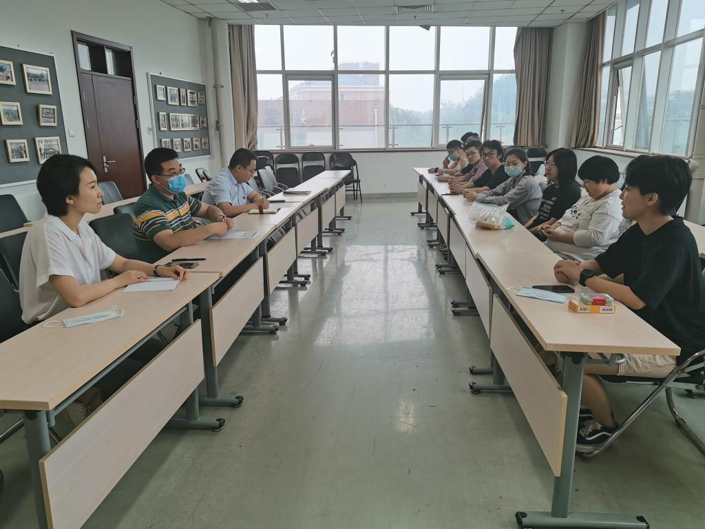 党总支书记党登峰、党总支副书记张思明、团委书记尹伊、专职辅导员彭先勖以及参训的十一位学生,座谈会由张思明主持。