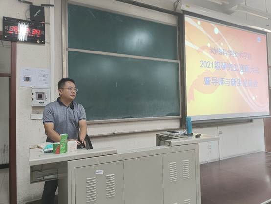 研究生和科研工作的一些基本情况,也对各位新同学在研究生阶段应具备的素质提出了要求。他认为做学问首先应该学会做人,要诚信当先,同时在搞好学业的同时也要处理好人际关系,学会与老师和同学和谐相处。党老师也对于实验室安全等问题进行了强调。他预祝全体新生在研究生阶段都能够学有所成,顺利毕业。