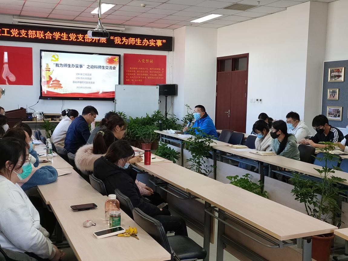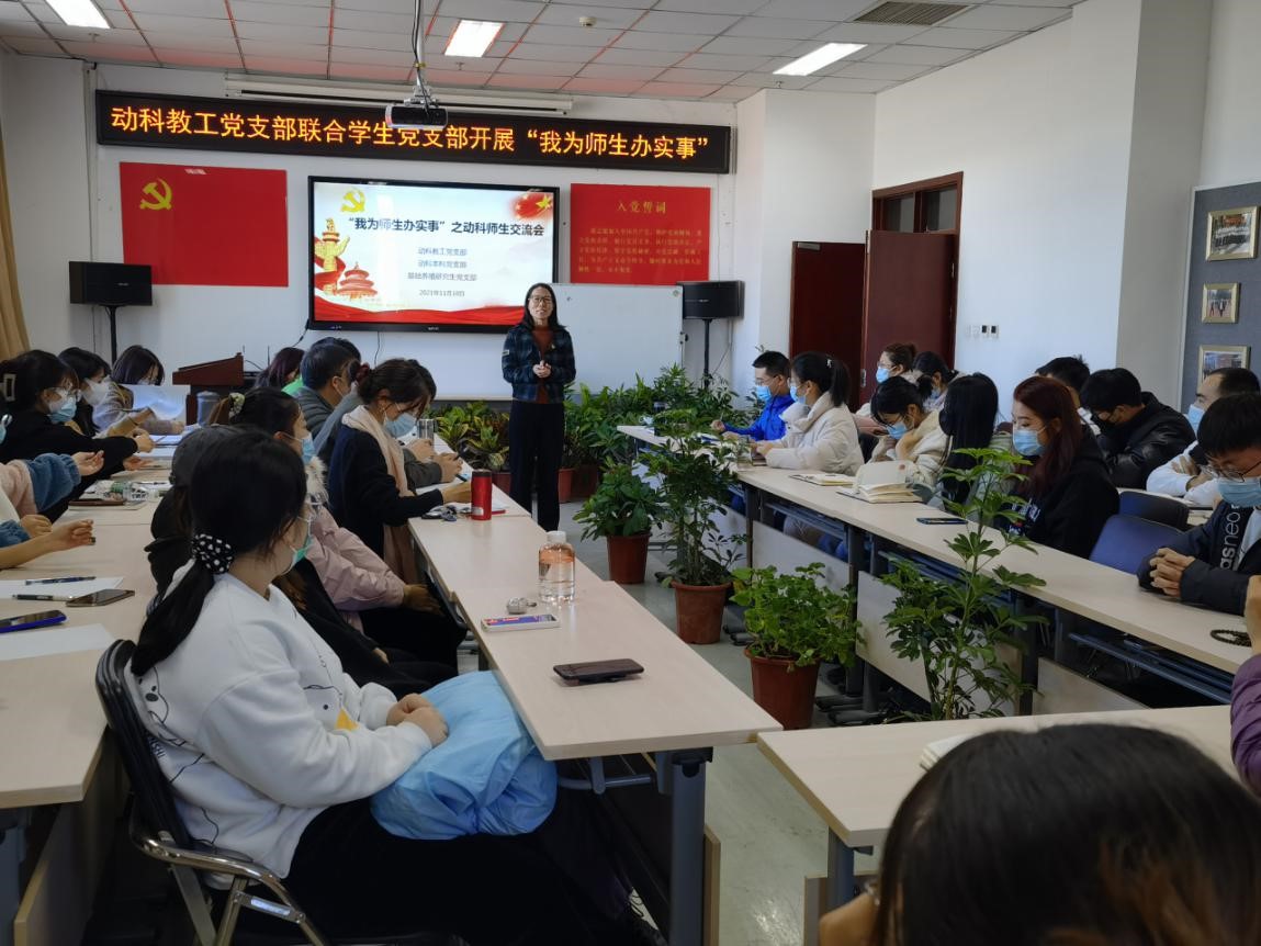 座谈会第二项内容是由动科本科党支部书记齐晓龙主持开展的有关教育教学方面的交流讨论。在场的同学们提出了现阶段教学活动中存在的问题,例如实验课分组小组内人数过多、现阶段教师网络授课软件不统一、研究生教学中实践内容较少、实验动物房卫生和环境的维护不及时等。针对以上问题,在场的各位教师认真听取学生们提出及意见和建议,耐心的为同学们做出解释,并就下一步改进措施进行了探讨。