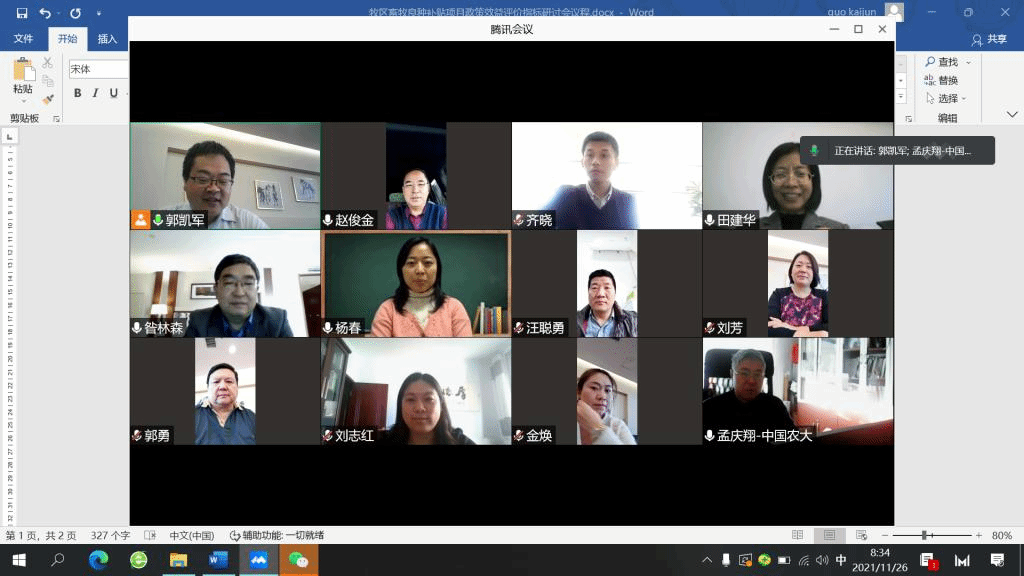 于2021年11月26日组织召开了牧区畜牧良种补贴项目政策效益评价指标研讨会。会议采用线上线下相结合的方式,线上腾讯会议(173 435 472);线下红桃视频