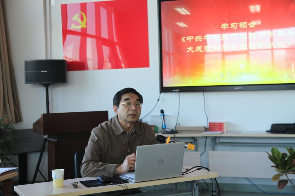 杨军书记以“全面总结中国共产党的百年奋斗重大成就和历史经验”为主线,通过三个历史决议产生的党史背景,从“4个历史阶段”、“13个方面历史性成就”、“5大历史意义”、“10大历史经验”和“1个伟大号召”几方面解读了《决议》的主要内容,深刻阐明了召开全会、做出历史决议的重大意义,阐释了党的百年奋斗的初心使命和重大成就,重点讲解了中国特色社会主义新时代的历史性成就和历史性变革,阐述了党的百年奋斗的历史意义和历史经验。杨书记着重强调了“两个确立”的历史意义和现实意义,习近平新时代中国特色社会主义思想是当代中国马克思主义,是二十一世纪马克思主义,也是中华文化和中国精神的时代精华。杨书记的报告运用丰富的史实,生动的事例,详实的数据,精彩的视频,给师生上了一堂生动的党史教育课,使大家从党的历史中感悟精神伟力,汲取奋斗之力。