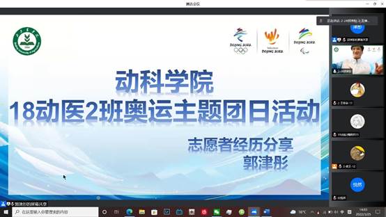 团委于3月21日至3月30日组织开展了“筑梦冬奥,激扬青春”主题团日线上活动。2018动医2团支部、2019动医1团支部和2020动医1团支部分别召开了三场主题团日活动,班主任傅业全、李佳和段慧琴老师主持了各支部的活动,红桃视频