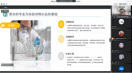 准备共建的计划等。接下来江苏集萃药康子公司销售部李洋从实验动物行业的专业要求、从业者现状、技能培训以及行业和个人发展前景等四块进行了实验动物从业者的概况介绍;人力资源部经理詹灵龙从企业基本信息、产品与技术服务、福利待遇、培训体系及招聘岗位四个方面详细全面的对公司进行了介绍;副总经理王鼎玉博士就毕业生即将步入社会时内心的焦虑和迷茫做了指导,强调工作是实现自身梦想和价值的载体,需要根据自身的性格、兴趣选择合适的职业和岗位。未来工作的成就取决于日积月累的自我驱动和长远的眼光,同时结合江苏集萃药康的价值观:自信、自修、自律、快乐,王鼎玉给即将毕业的学子们送上最美好的祝愿。