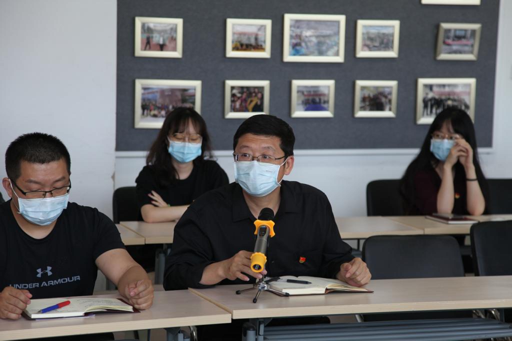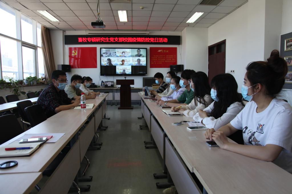 五名驻校干部学生处处长刘柳、安稳处处长任宇飞、信息中心主任史伟、安稳处科长李俊升、安稳处周斌分别对接一个在校研究生党支部,会上,驻校干部带领党员深入学习习近平总书记关于疫情防控的重要指示精神以及孙春兰副总理考察北京时提出的有关工作要求,用有力迅速的行动在大战大考中彰显“红色堡垒”、“特别能战斗”的风采。